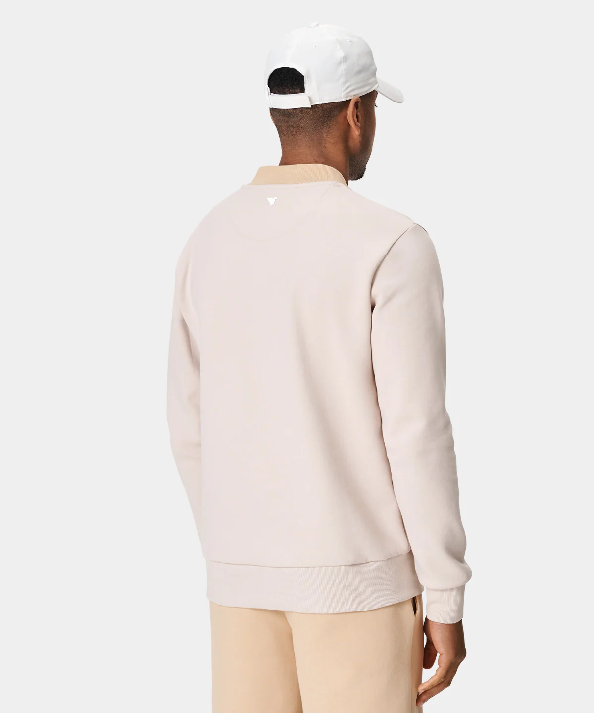 Crafted from a cotton blend, this tan TX bomber sweater is a fresh take onĀ the generic sweater. ThisĀ two tone piece features a low profile bomber style collar, plus rib detailing in the cuffs and bottom hem for a modern and comfortable fit.Ā